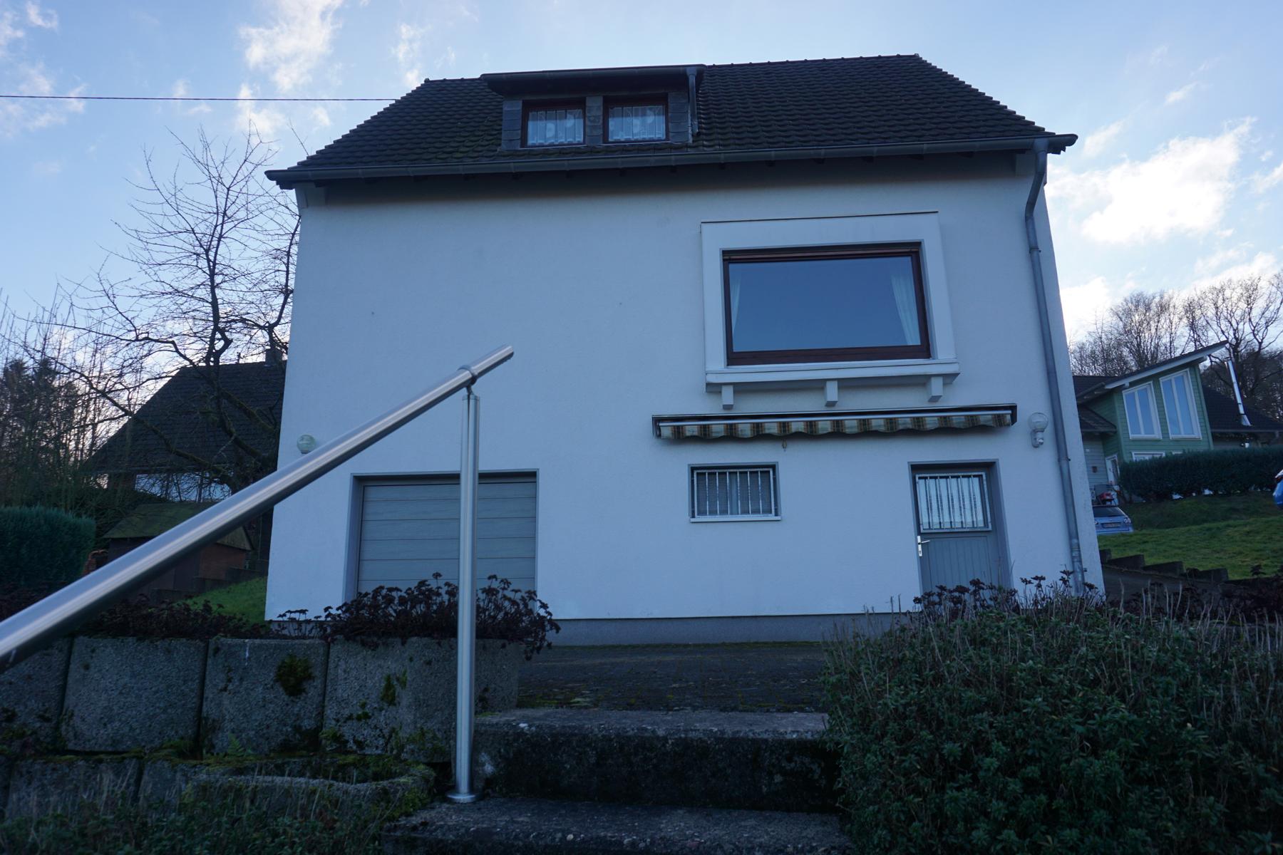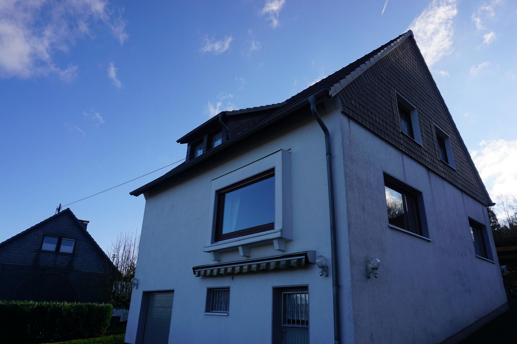 Ursprünglich wurde diese massiv, solide gebaute Immobilie, als Zweifamilienhaus im Jahr 1961 erbaut. Zuletzt als Einfamilienhaus genutzt, ist das zweigeschossige Haus kontinuierlich gepflegt und instandgehalten worden.Dies zeigt sich z.B. an den regelmäßig gestrichenen isolierverglasten Holzrahmenfenstern und an den ebenso gepflegten Böden. Im Wohnzimmer, sowie im Schlafzimmer das Parkett und in den übringen Räumen die Fliesen. Auf jeder Etage befindet sich ein Tageslichtbad. Im Erdgeschoss mit Badewanne und Dusche (vermutlich aus den 80ziger Jahren). Im Obergeschoss mit einer Dusche ausgestattet. Im Erdgeschoss, ist neben der Küchenzeile im Esszimmer, ein großzügiges Wohnzimmer mit Panoramablick über Engelskirchen, sowie ein Schlafzimmer und das Bad zu finden. Im Obergeschoss befindet sich 1 Schlafzimmer, 1 Wohnzimmer, sowie Küche, Bad und ein kleineres Schlafzimmer, das evt.als Büro genutzt werden kann. Die Immobilie wird über eine Gastherme mit Warmwasseraufbereitung (Bj. 2001) beheizt. Jede Etage verfügt über einen eigenen Stromzähler, sodass eine Eigennutzung + Vermietung möglich ist. Das Haus ist voll unterkellert mit eingebauter Garage, die in 2024 mit einem elektrischen Garagentor ausgestattet wurde, sowie einem großem Vorausraum, eine Waschküche mit Ausgang zum Garten, sowie dem Heizungsraum.