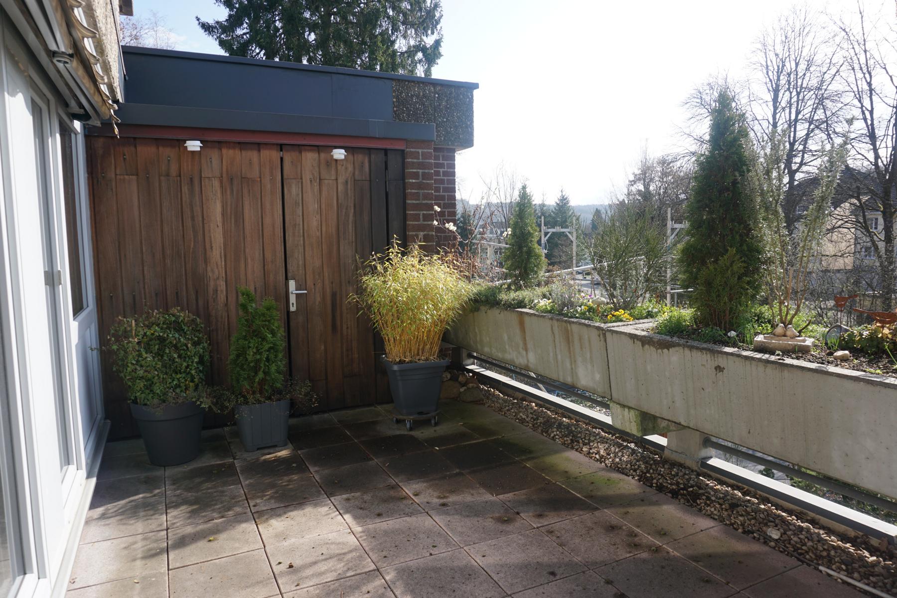 Ausstattung: Diese Wohnanlage wurde in 1976 in massiver Bauweise mit mehreren Wohneinheiten errichtet und gehört zu den beliebtesten Wohnlagen in Wiehl. Durch die Bauweise mit versetzten Ebenen hat jede Wohnung in diesem Komplex einen separaten Eingang. Auf der zweiten Wohnebene befindet sich diese modernisierte Wohnung. Der Wohn-Essbereich ist lichtdurchflutet und verfügt über einen direkten Zugang zur großen, nach Südwesten ausgerichteten Dachterrasse. Eine elektrische Markise schützt hier vor intensiver Sonnenbestrahlung. Zu den Modernisierungen gehören unter anderem in 2012 eingebaute neue Fenster und die Hauseingangstür. und ein ein neues Bad mit hochwertigen, geschmackvollen Fliesen und bodentiefer Dusche wurde in 2016 eingebaut.Das WC wurde ebenfalls neu installiert und befindet sich separat vom Bad. Ein Waschmaschinenanschluss im Bad erleichtert den Alltag. Die Böden im Wohnbereich und in den Schlafzimmern sind mit einem hochwertigen Parkett ausgelegt. Ein Abstellraum auf der Dachterrasse sowie ein Tiefgaragenplatz ( im Kaufpreis enhalten) runden dieses Angebot ab. Eine schnelle Internetverbindung ist ebenfalls vorhanden. Durch den Einbau einer neuen Heizungsanlage in 2006 beläuft sich der Energieverbrauch des Gebäudes auf 156,0 kWh(m².a).