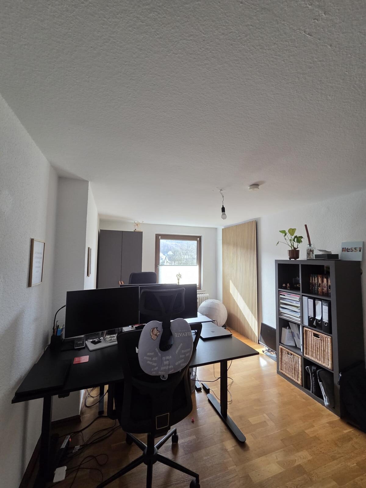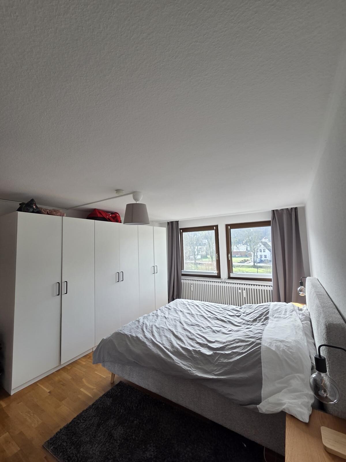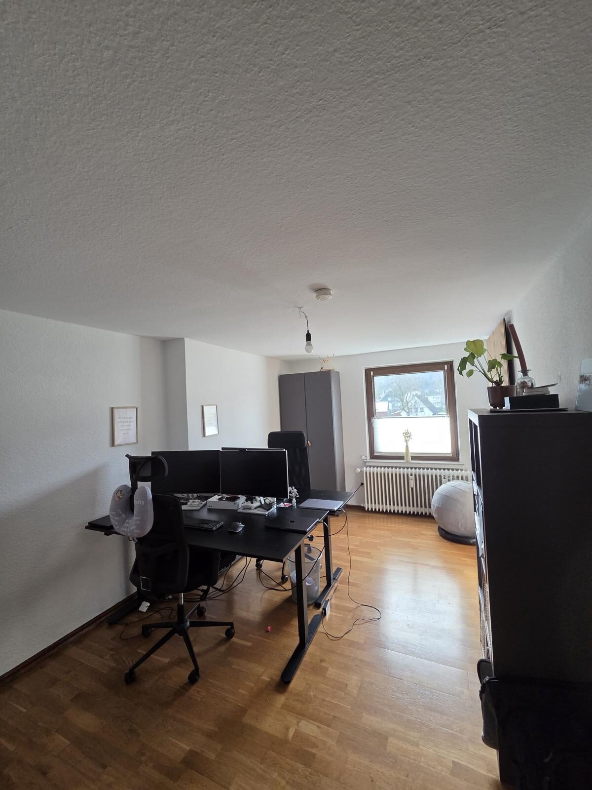 Diese Wohnung im zweiten Obergeschoss mit 3 Zimmern und Balkon, sowie im Dachgeschoss mit einem Zimmer und der Loggia bietet auch einer kleinen Familie genügend Räumlichkeiten. Die lichtdurchfluteten Räume, sowie die Parkettböden in den Wohn-und Schlafräumen schaffen Behaglichkeit. Im Bad und in der Küche sind die Böden gefliest. Der Balkon ist vom großzügigen Wohnzimmer aus begehbar. Die Loggia befindet sich im Dachgeschoss und bietet durch die Südlage, einen wunderschönen Blick über die nähere Umgebung. Die neuwertige Einbauküche kann zu einem fairen Preis vom Vormieter erworben werden. Die Schlafzimmer befinden sich ebenfalls auf der straßenabgewanten Seite. Das Tageslichbad ist mit einer Badewanne ausgestattet. Der Energieverbrauch liegt bei 82,8 kWh. Ein Kellerraum ist dieser Wohnung zugeordnet. Des Weiteren gehört eine Garage (zzgl.30,00 €) zum diesem Mietangebot. Die Nebenkosten sind für 1-2 Personen zum jetzigen Stand berechnet. Die Wohnung wird zum 01.06.2026 bezugsfrei. Bei mehreren Personen und Verbrauch/Preisentwicklung, werden die Nebenkosten entsprechend angepasst. Mietinteressenten mit einem festen Arbeitsverhälniss sind erwünscht.